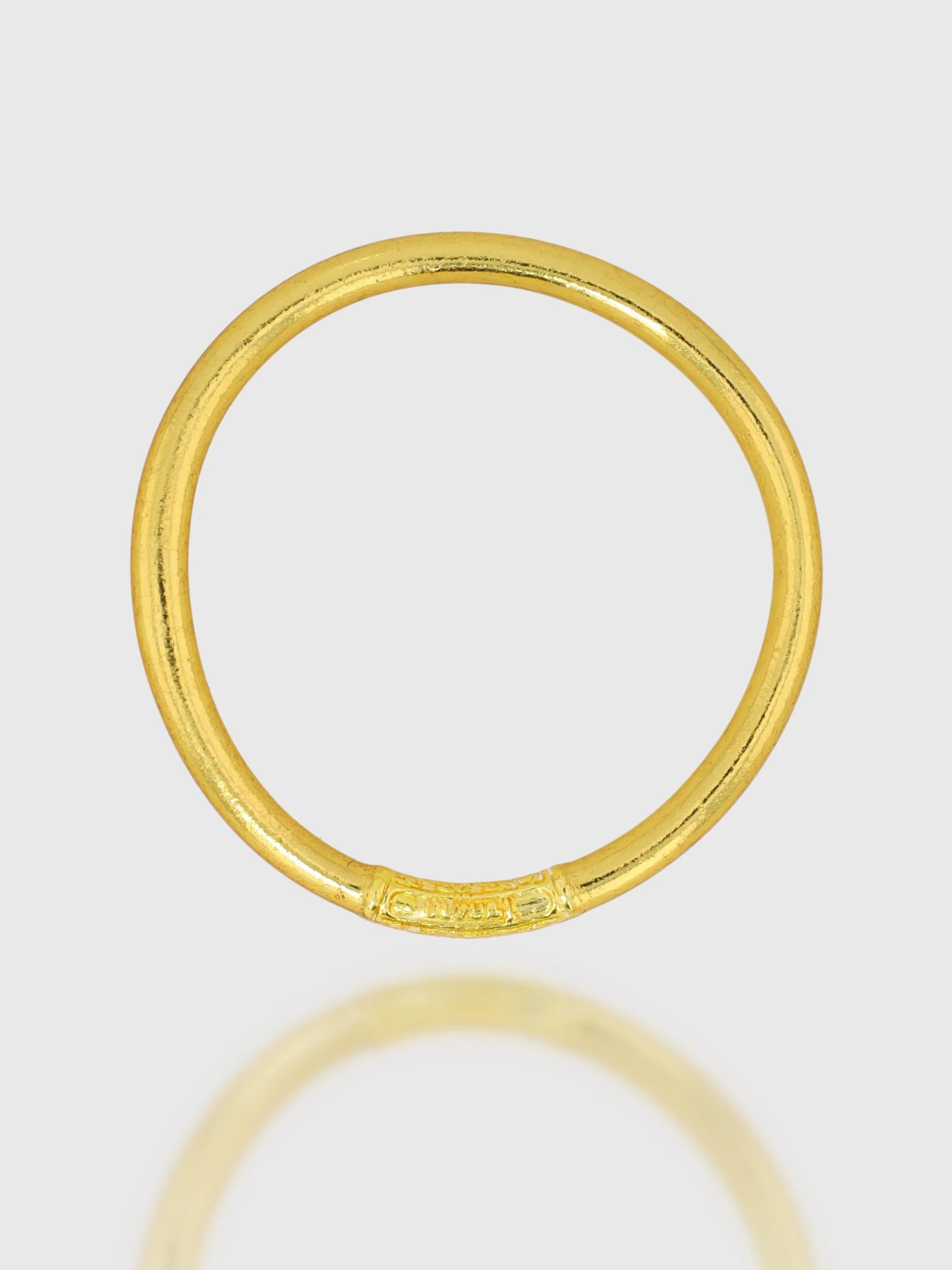Jonc souple transparent rempli de feuilles dorées, scellé avec un mantra gravé « Bonheur, Chance, Fortune et Amour » en thaïlandais